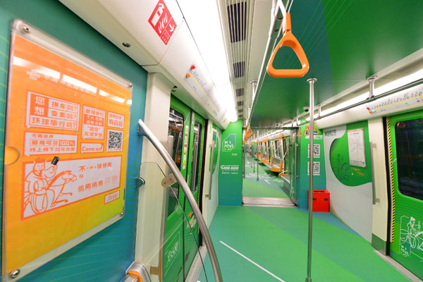 成都地鐵2號(hào)線有了一列“綠色”班列,這是郵儲(chǔ)銀行四川省分行為慶祝新中國成立70周年,和成都地鐵合作開行的“郵儲(chǔ)銀行號(hào)”主題列車,乘客們可以在地鐵2號(hào)線上感受到“滿目的綠,清新爽心”的美景。