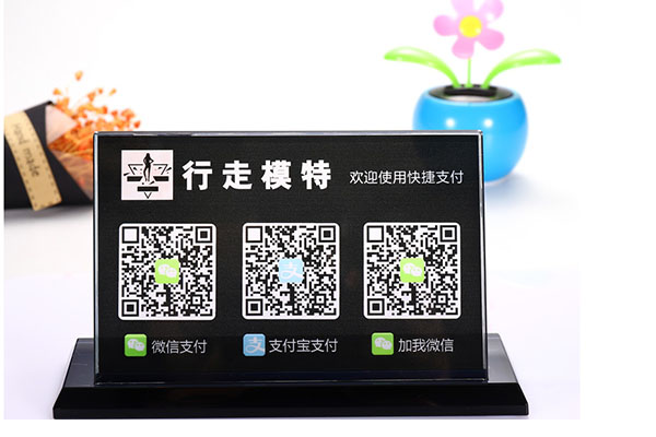 二維碼支付牌的制作材質是亞克力板材質、PVC板材質、木材材料等,一般PVC板材質和亞克力板材質使用的比較常見一點,任何商家都比較普遍的使用。而木質材料一般更常見于比較有特色一點的店面,比如花店等地。這類材質制作出來比較復古一點,也更親近于自然一點。